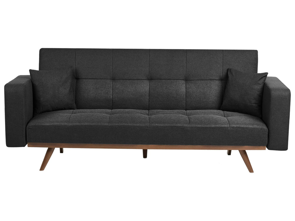 Sofa Bed Black Polyester Upholstery Tufted 3 Seater Iron Legs Track Armrests Traditional Style Living Room Beliani is backordered and will ship as soon as it is back in stock.