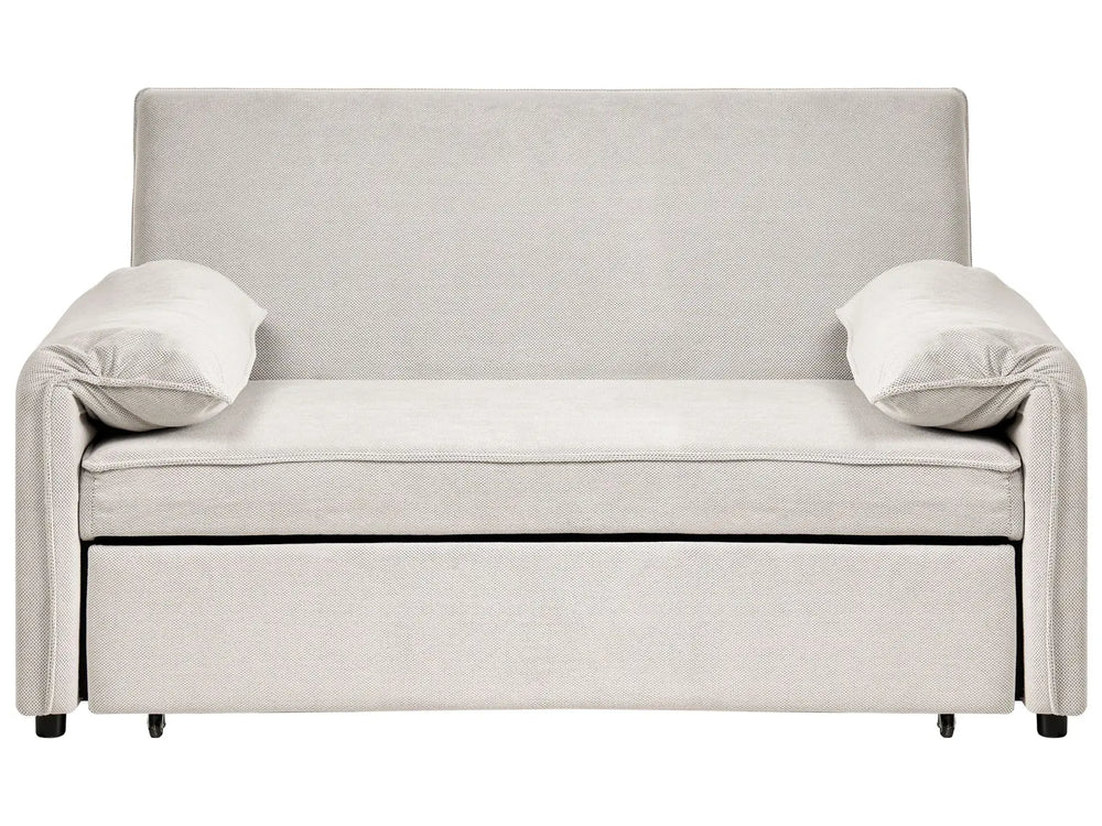 Sofa Bed Off White Fabric with Fold Out Sleeping Function Minimalist Sofa Beliani