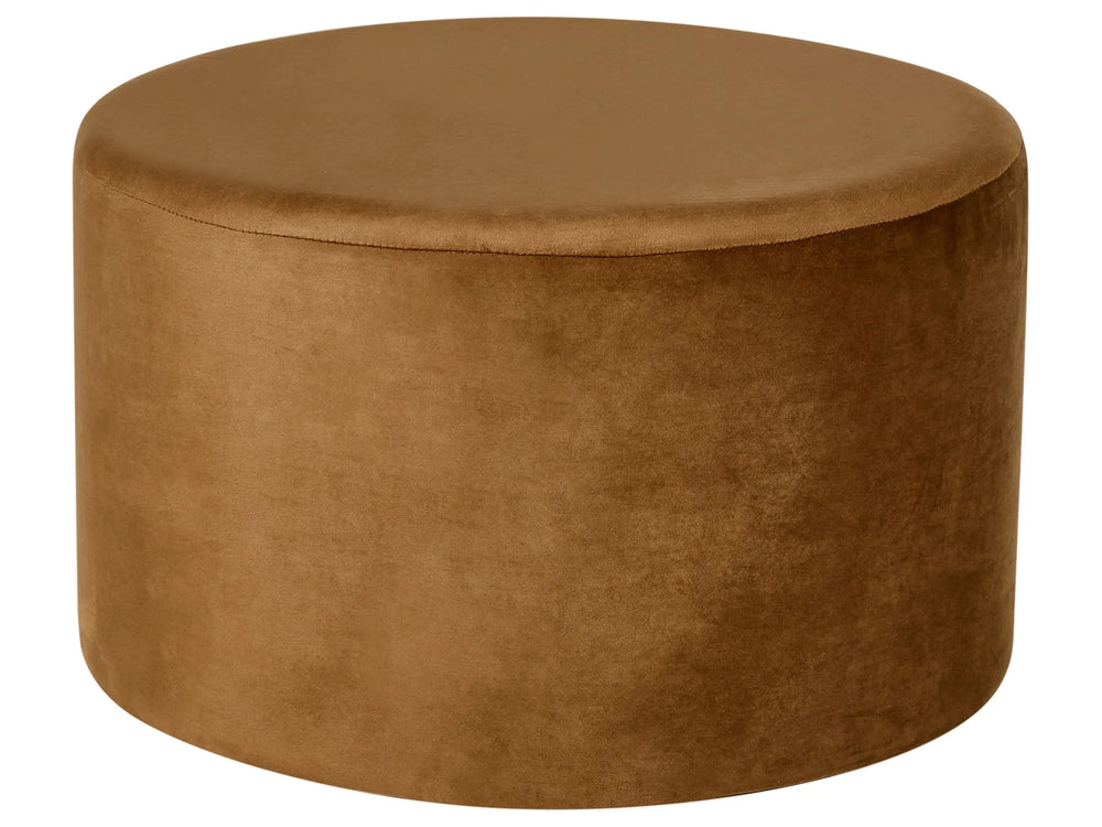Round Pouffe Velvet Golden Brown Ottoman Round Footstool Glam Living Room Bedroom Beliani