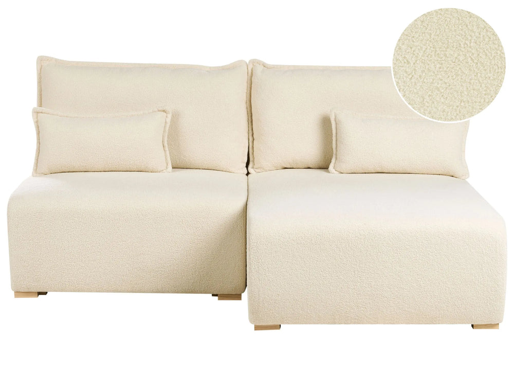 Modular Left Hand Corner Sofa Off White Boucle Upholstered with Sleeping Function and Storage Minimalistic Style Beliani