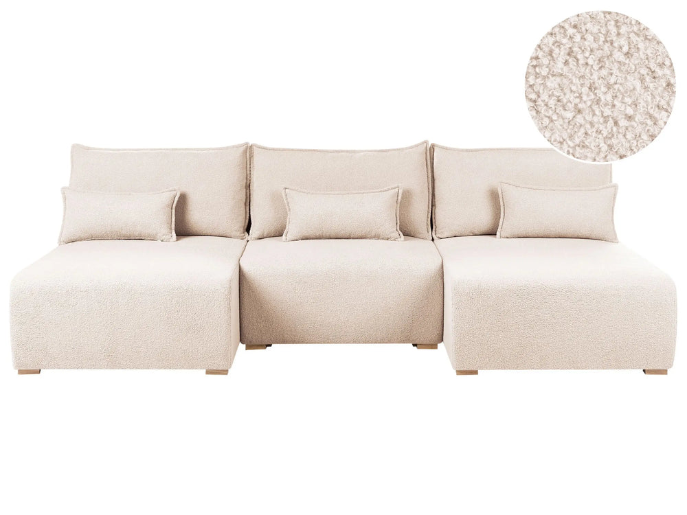 Modular U Shaped Sofa Beige Boucle Upholstered with Sleeping Function and Storage Minimalistic Style Beliani