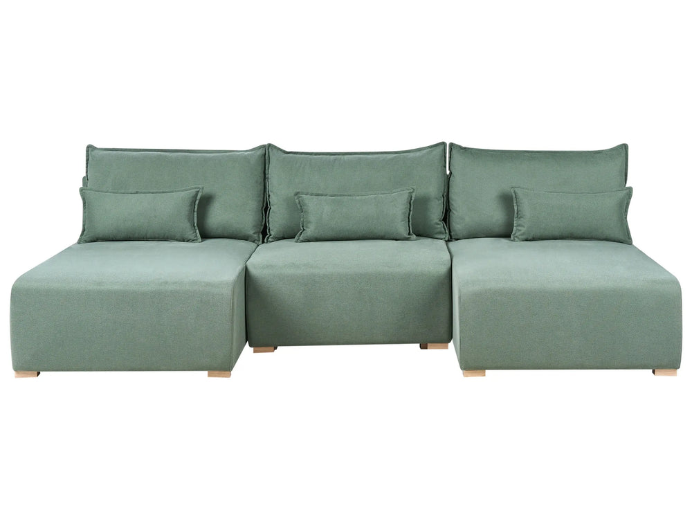 Modular U Shaped Sofa Light Green Fabric Upholstered with Sleeping Function and Storage Minimalistic Style Beliani
