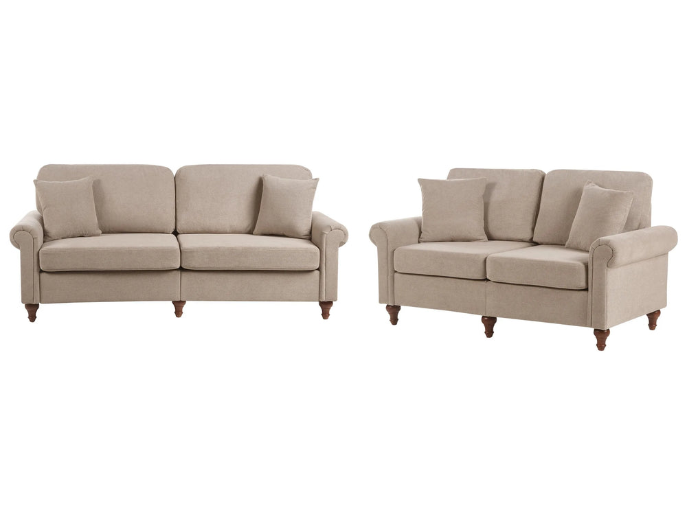 2 + 3 Seater Taupe Scrolled Arms Sofa Set Throw Pillows Living Room Traditional Modern Beliani