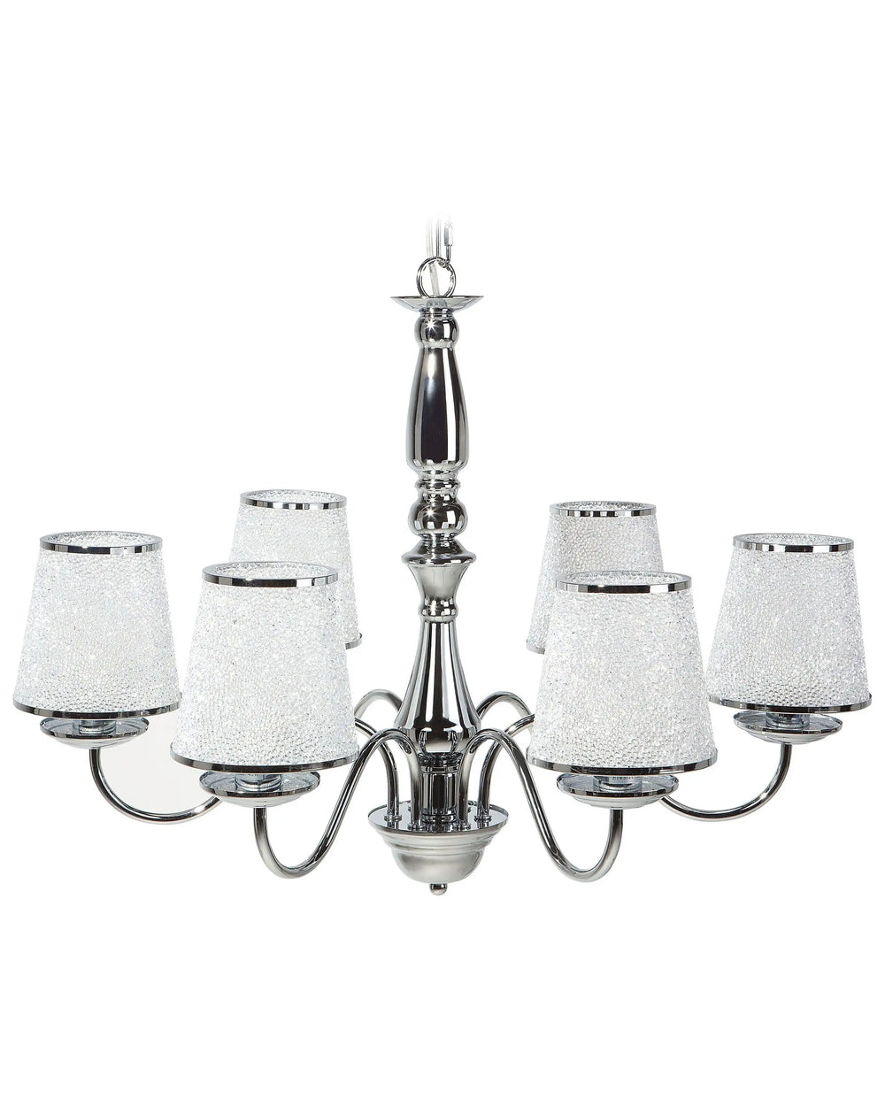 6-Light Pendant Chandelier Silver Emperor Shades Glossy Beliani