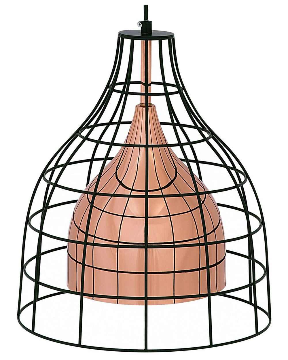 Ceiling Lamp Copper Metal 121 cm Pendant Black Cage Shade Industrial Beliani