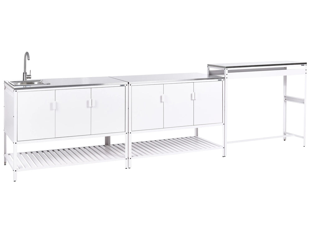 Outdoor Kitchen Cabinet White Stainless Steel 3 Door Unit with Top Garden Kitchen Dining Beliani