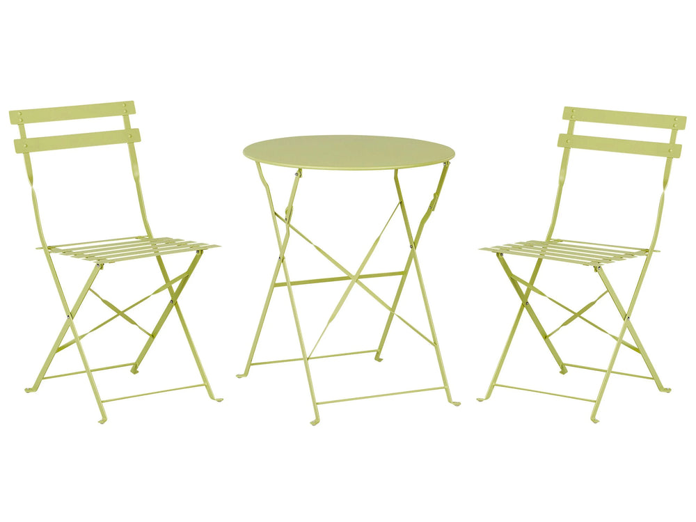 3 Piece Bistro Set Lime Green Metal Folding Slatted Seat Back Outdoor Beliani