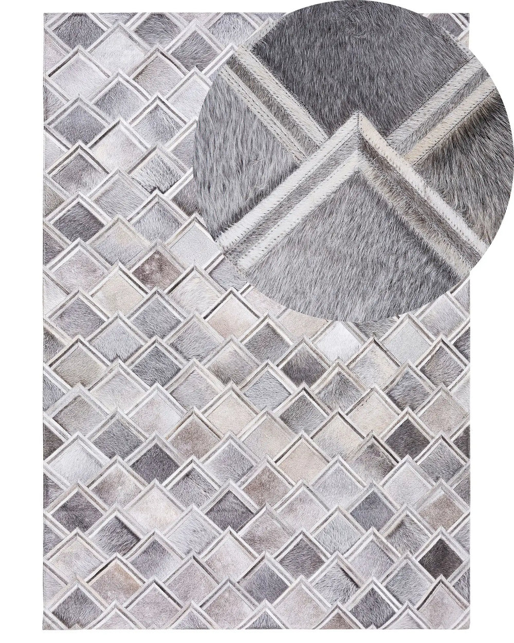 Area Rug Grey Leather 160 x 230 cm Patchwork Cowhide Geometric Rectangular Modern Beliani