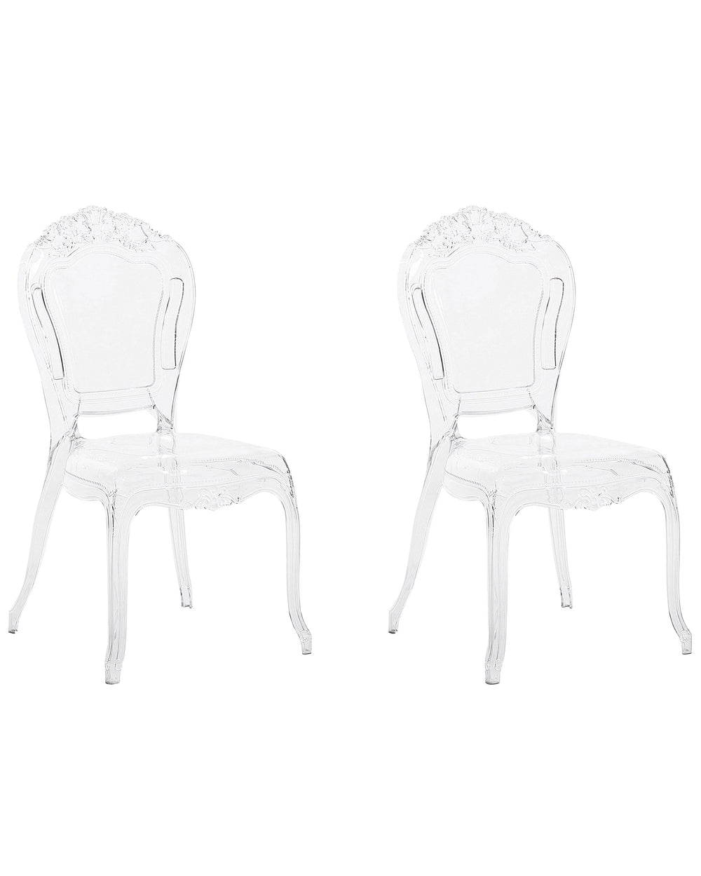 Set of 2 Dining Chairs Transparent Acrylic Solid Back Armless Stackable Vintage Modern Design Beliani