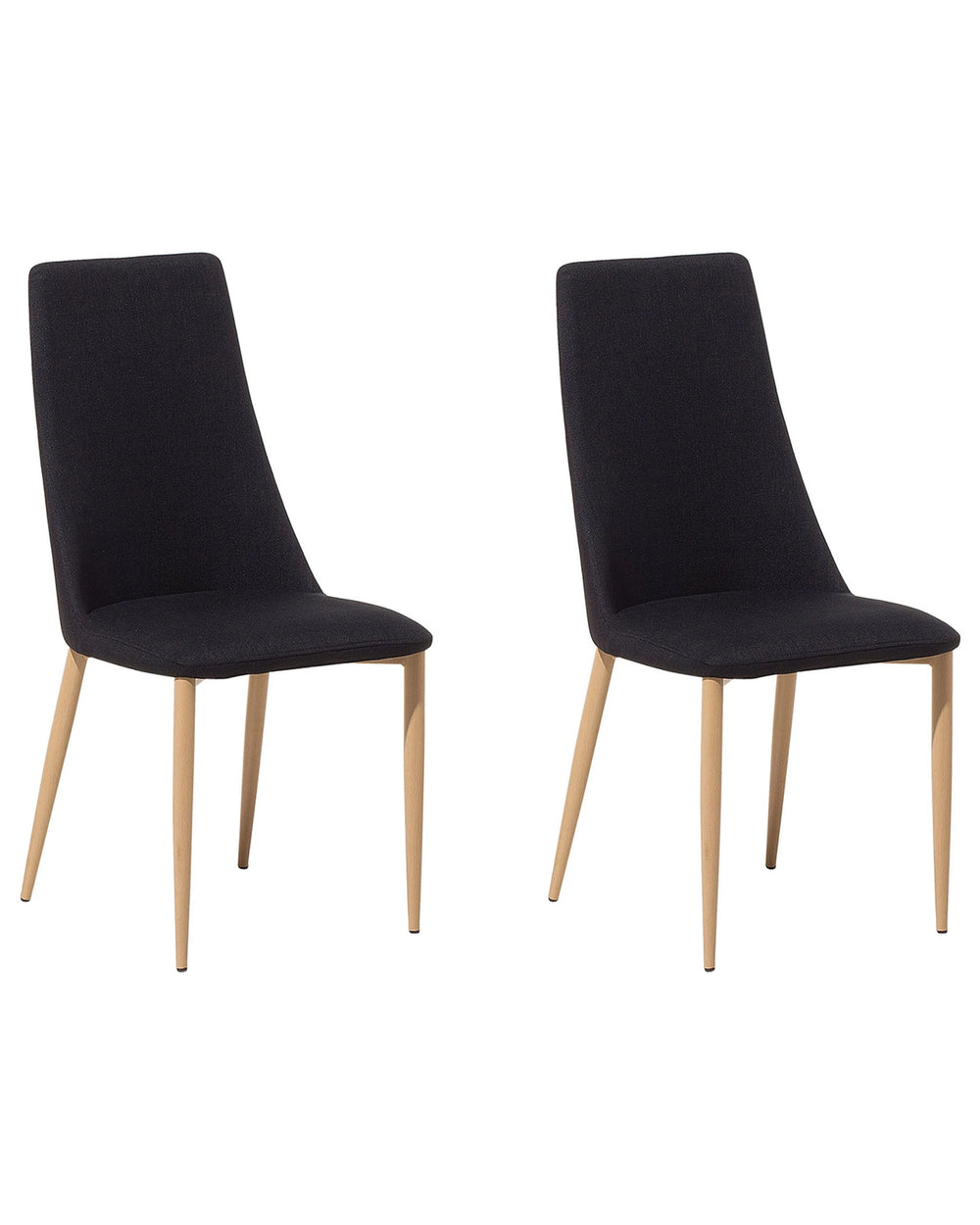 Set of 2 Dining Chairs Black Fabric Upholstered Seat High Back Beliani