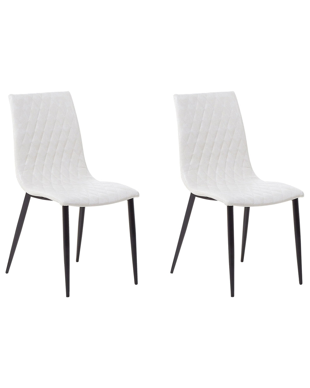 Set of 2 Dining Chairs White Faux Leather Upholstered Quilted Backrest Armless Vintage Design Beliani
