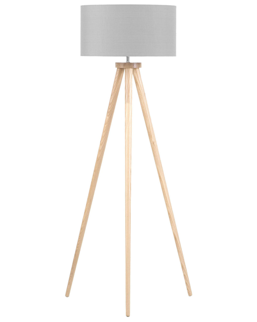 Floor Lamp Grey Polycotton 142H cm Oak Light Wood Tripod Legs Drum Shade Modern Beliani