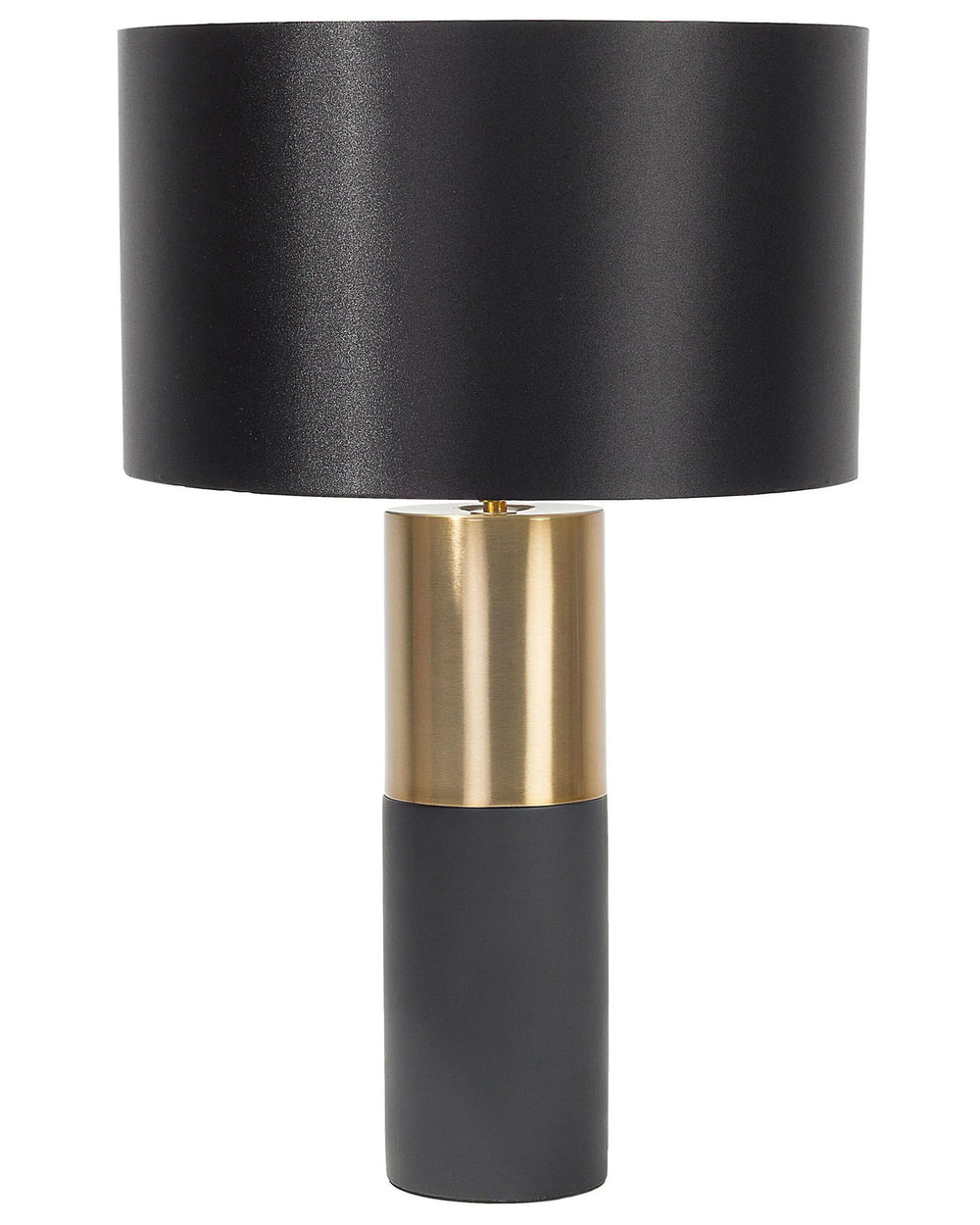 Table Lamp Bedside Light Grey Round Base Black Fabric Round Drum Shade Beliani