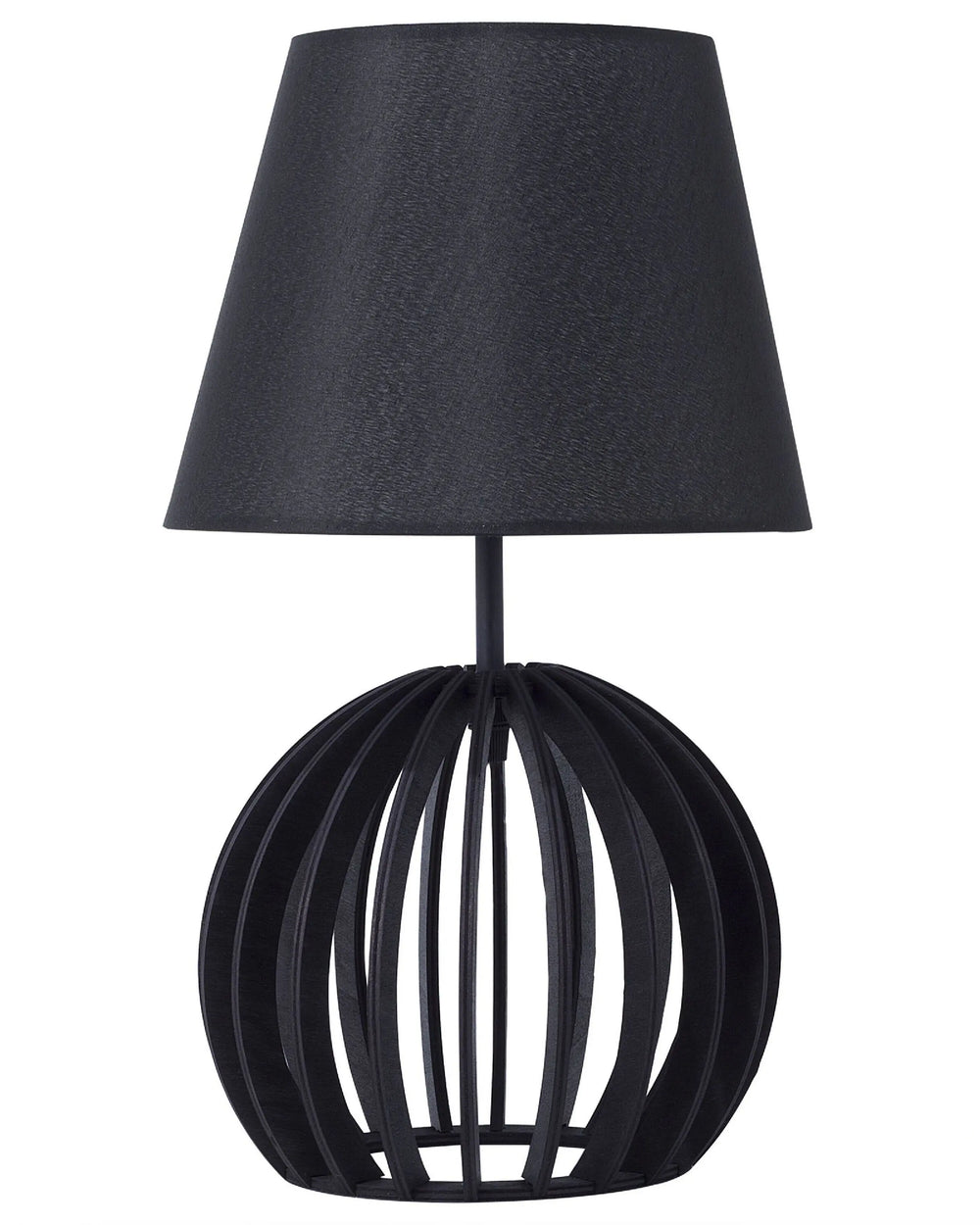 Table Lamp Black Round Wood Base Black Fabric Lampshade Modern Beliani