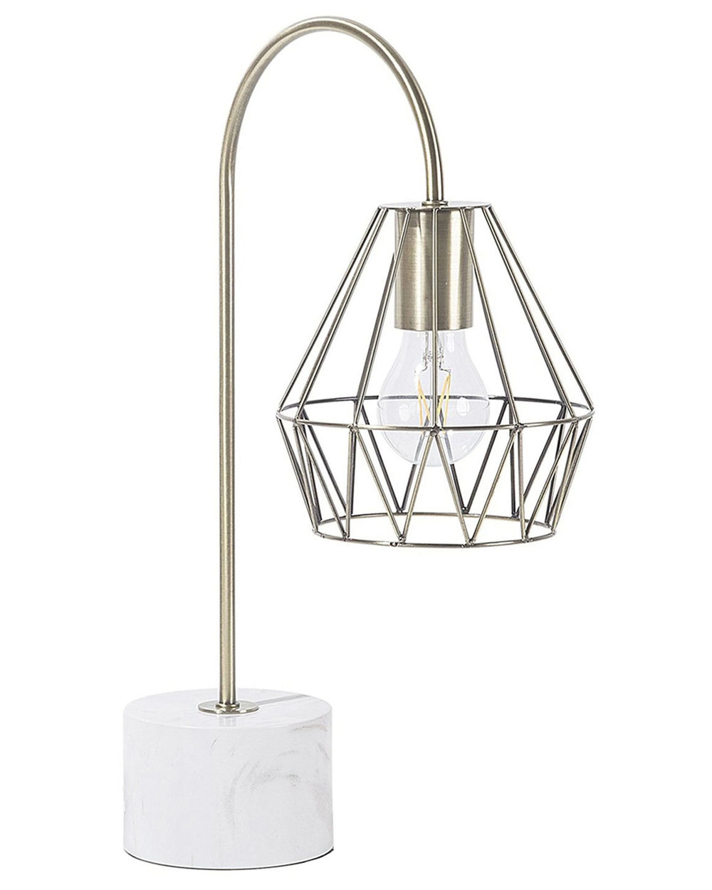 Table Lamp Desk Light Brass Metal Diamond Cage Shade Round Base Marble Look Beliani