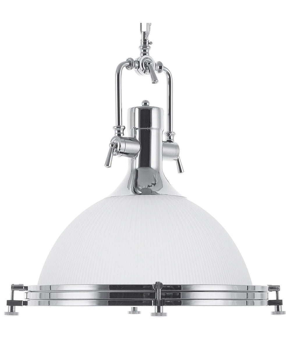 Pendant Lamp White Glass Silver Elements Task Lighting Industrial Beliani