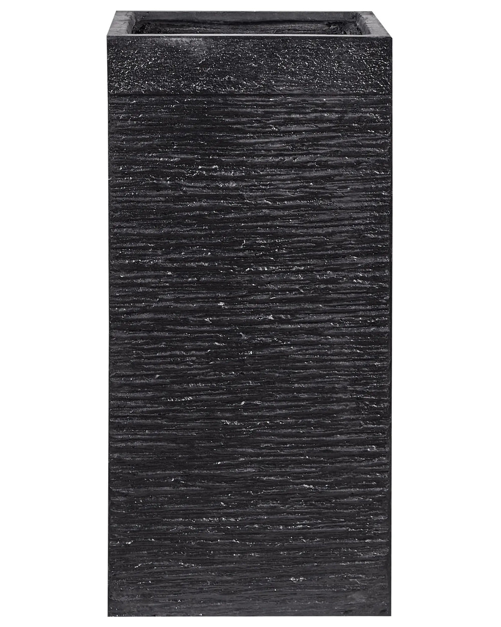 Plant Pot Black Fibre Clay Tall Flower Planter Square 33 x 33 x 70 cm Indoor Outdoor Garden Accessories Beliani