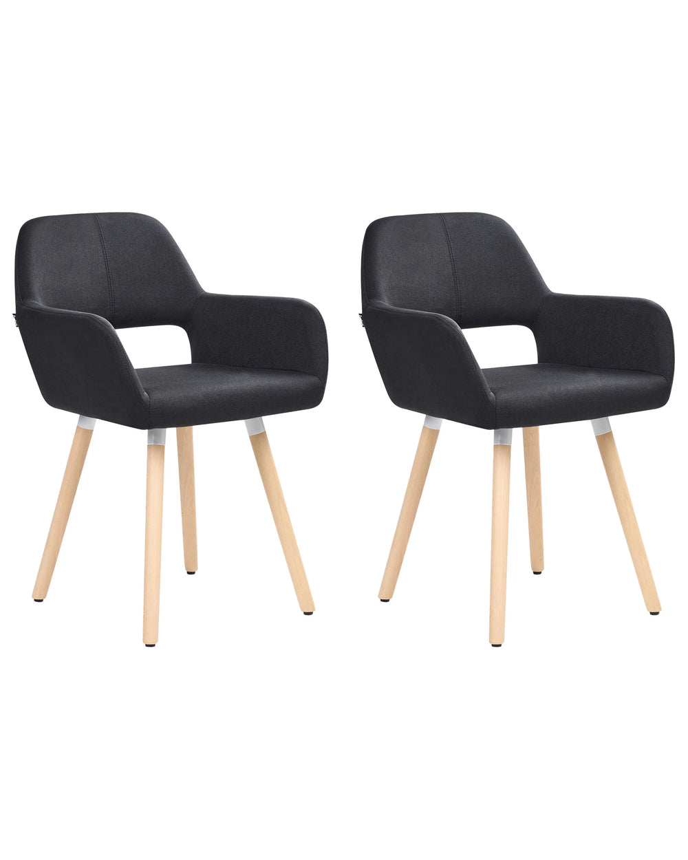Set of 2 Dining Chairs Black Fabric Upholstery Light Wood Legs Modern Eclectic Style Beliani