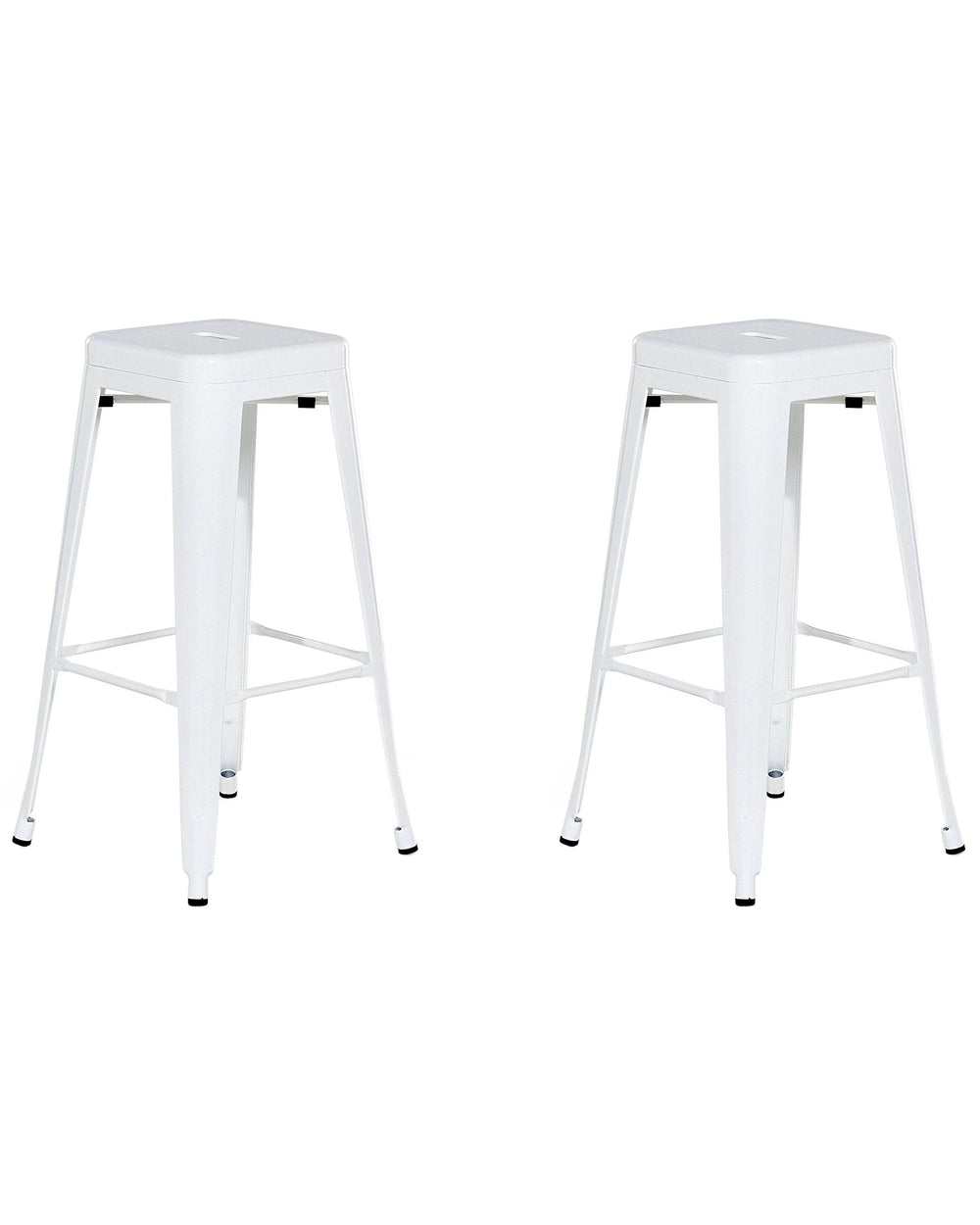 Set of 2 Bar Stools White Steel 76 cm Stackable Counter Height Industrial Beliani