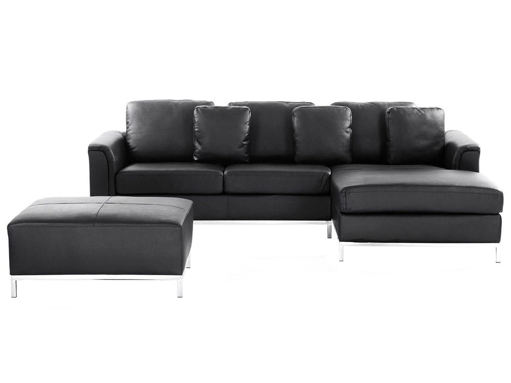 Corner Sofa Black Leather Upholstered with Ottoman L-shaped Left Hand Orientation Beliani is backordered and will ship as soon as it is back in stock.