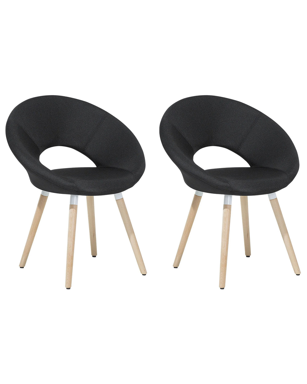 Set of 2 Dining Chairs Black Fabric Upholstery Light Wood Legs Modern Eclectic Style Beliani