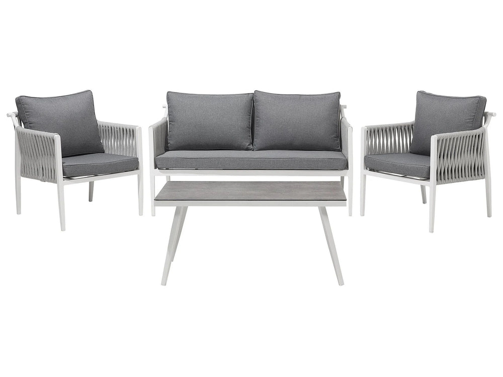 4 Piece Garden Sofa Set White Aluminium Grey Cushions 4 Seater Table Sofa 2 Chairs Beliani