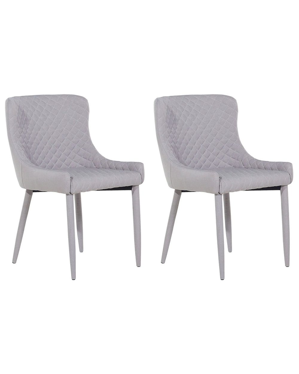 Set of 2 Dining Chairs Light Grey Fabric Upholstery Glam Eclectic Style Beliani