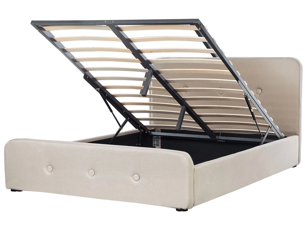 Slatted Bed Frame Beige Polyester Fabric Upholstered Wooden Legs Ottoman Storage 5ft3 EU King Size Modern Design Beliani
