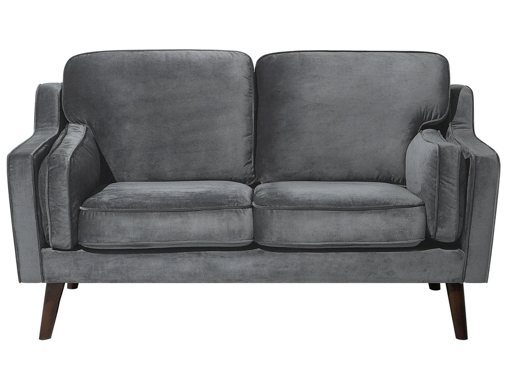 Sofa Grey 2 Seater Velvet Oak Wood Legs Classic Mid-Century Living Room Beliani is backordered and will ship as soon as it is back in stock.