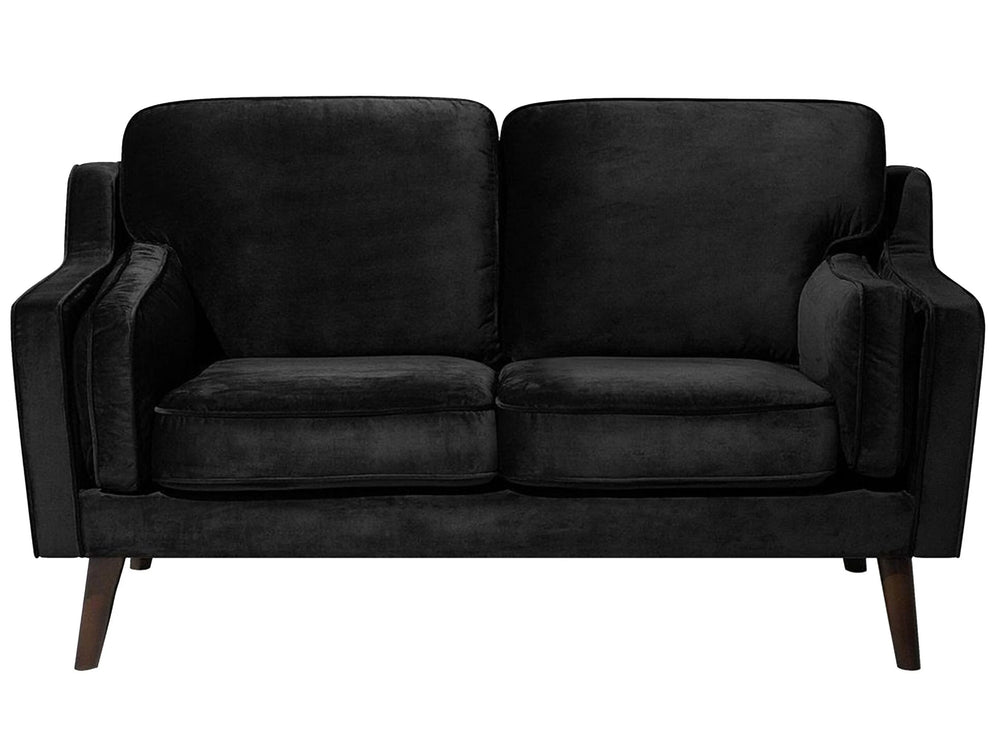Sofa Black 2 Seater Velvet Oak Wood Legs Classic Mid-Century Living Room Beliani