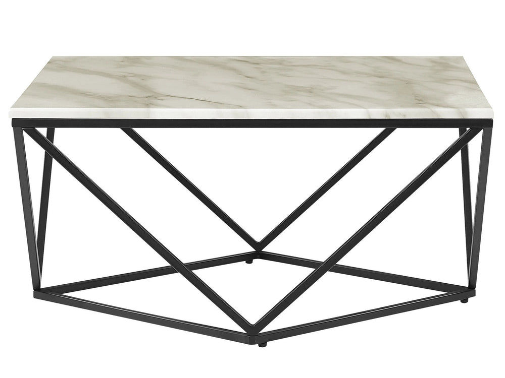Coffee Table Beige Tabletop Black Metal Base 80 x 80 cm Manufactured Wood Marble Finish Glamorous Design Beliani