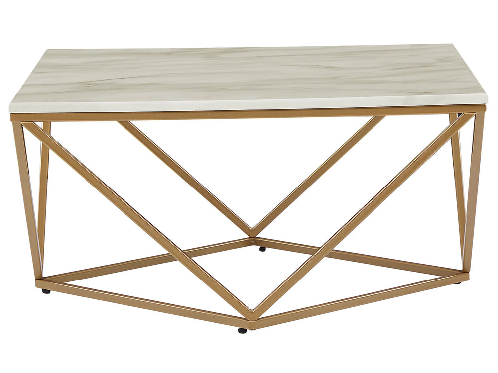 Coffee Table Beige Tabletop Gold Metal Base 80 x 80 cm Manufactured Wood Marble Finish Glamorous Design Beliani