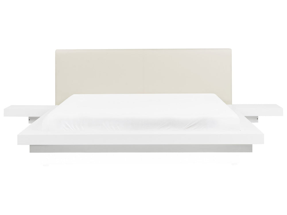 Japan Water Bed White EU Super King Size 6ft Wooden Frame MDF Faux Leather Headboard Low Profile with Mattress Bedroom Beliani