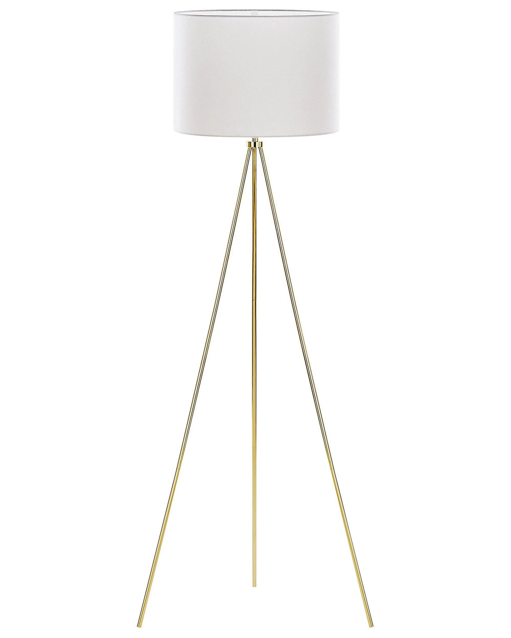 Floor Lamp Gold Metal 148 cm Tripod Stand White Fabric Drum Shade Beliani