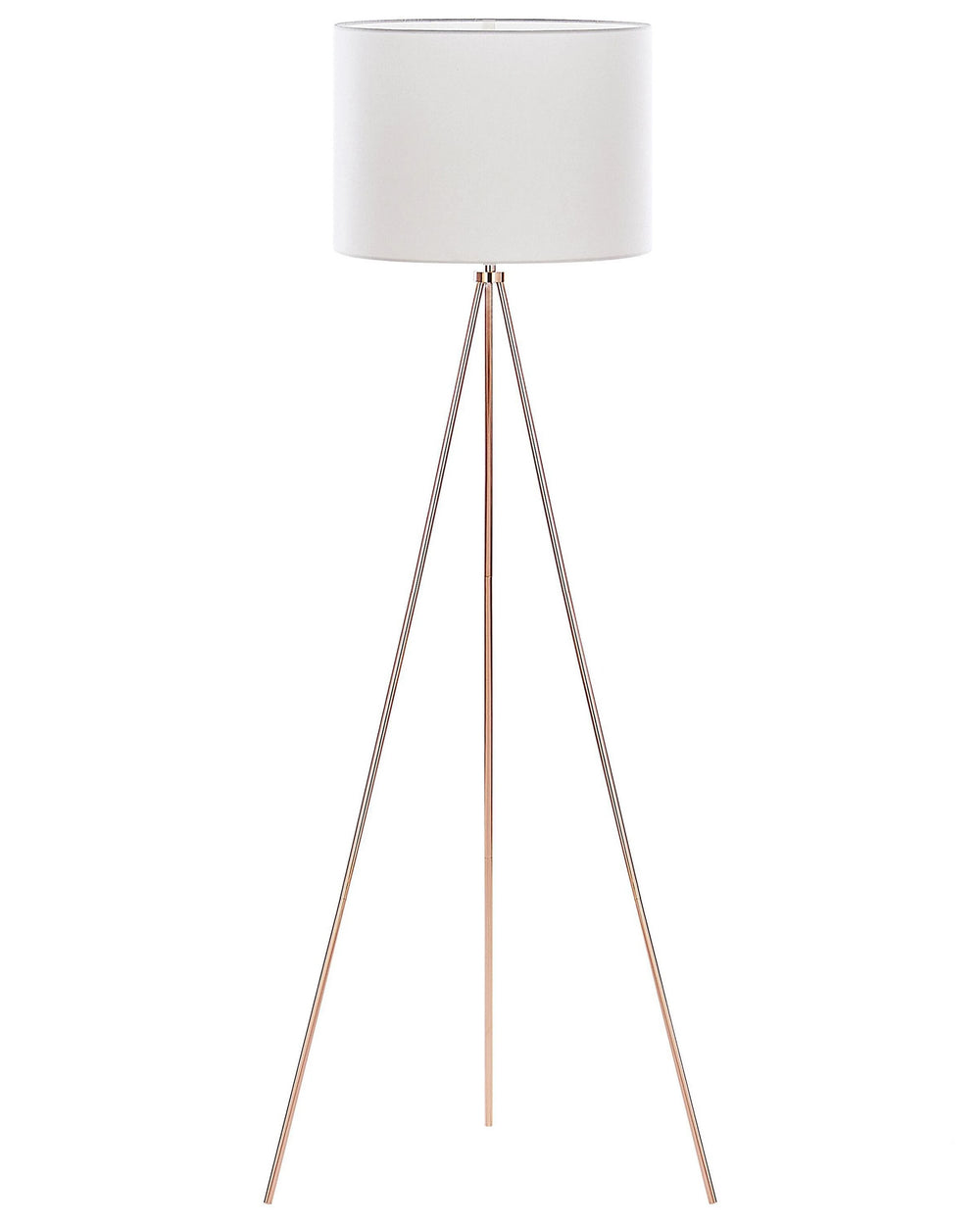 Floor Lamp Copper Metal 148 cm Tripod Stand White Fabric Drum Shade Beliani
