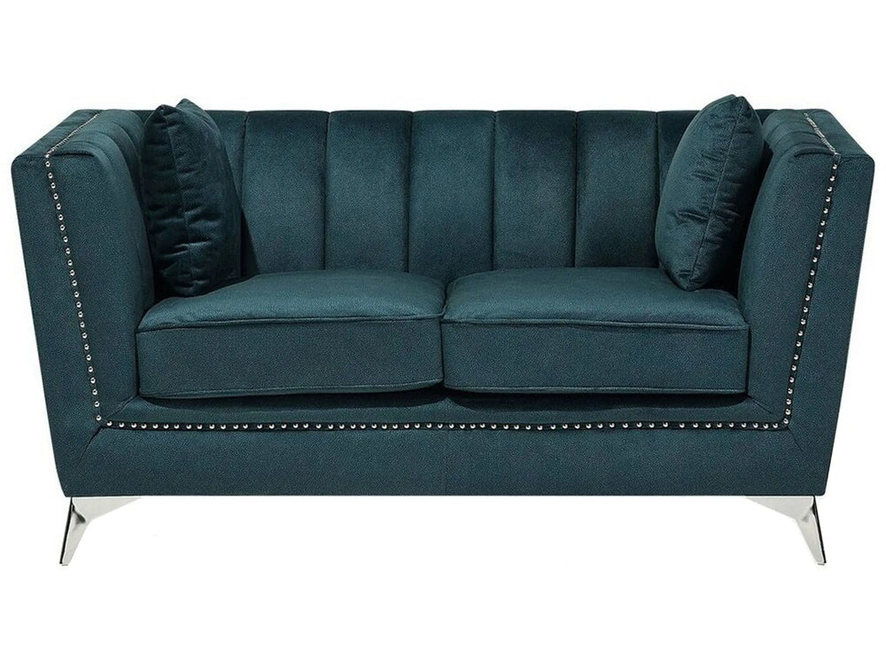 2 Seater Sofa Teal Blue Nail Head Trim Panel Tufting Beliani
