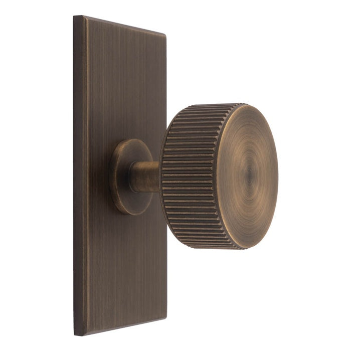LINES RADIO KNOB ON RECTANGULAR BACKPLATE - ANTIQUE BRASS - SET