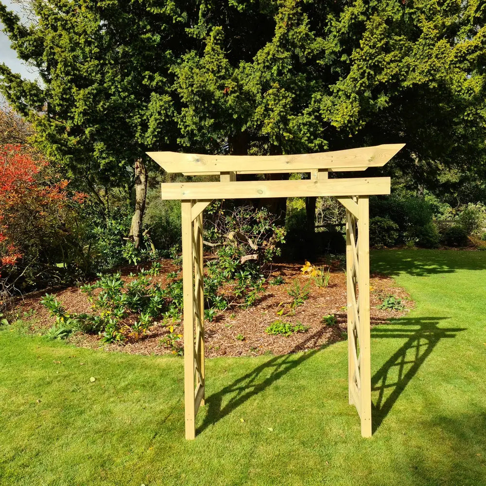 Tokyo Arch 4 ft FSC-Certified Pressure-Treated Timber Oriental Garden Arch with Diamond Lattice Panels | Climbing Plant Support