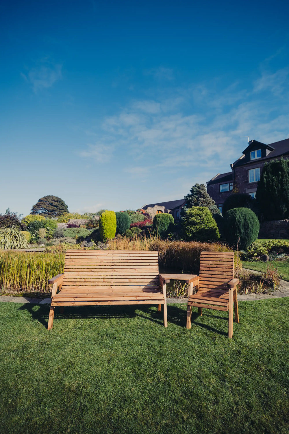 The Valley 4 SEATER Set is designed with comfort and durability in mind. It has a beautiful golden oak finish that will add natural charm to any outdoor space. The set consists of 1 x chair and 1 x three seater bench and comes with a handy ANGLED tray that rests on the arms connecting the chair and bench together. The tray lifts on and off with ease allowing you the freedom to relocate the chairs easily in your garden. Made from the finest FSC certified Swedish Redwood. This product has been treated with a base coat for protection, ensuring long-lasting durability. To maintain its condition and protect against rot, we recommend re-treating the wood annually. Please note seat cushions are not included and can be purchased separately.