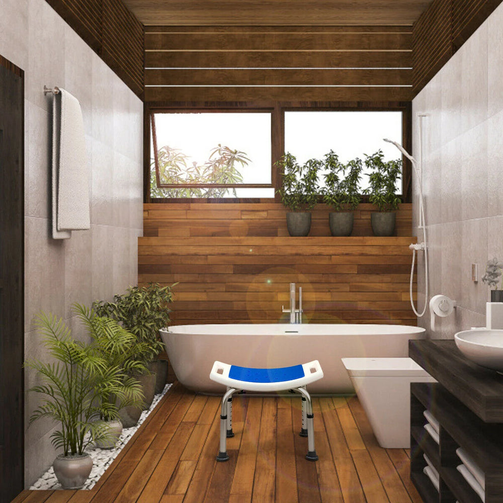 A lightweight yet strong aluminium frame keeps the stool stable while remaining easy to move. Four anti-skid rubber feet help prevent movement on wet surfaces, and the compact footprint fits most bathtubs and shower enclosures.