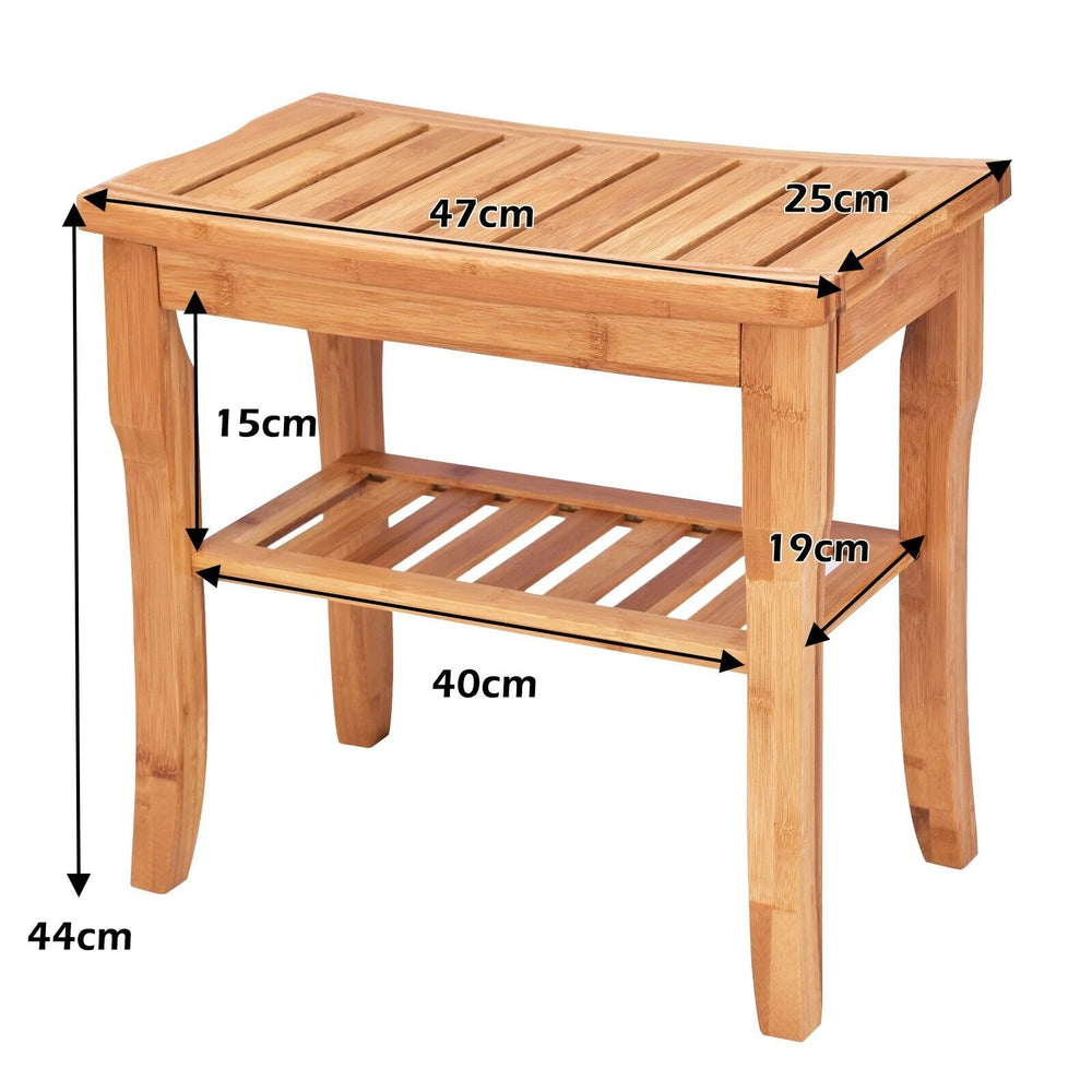 Bamboo Shower Bench Seat with Storage Shelf for Bath