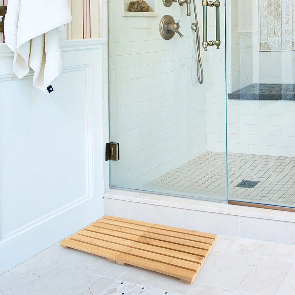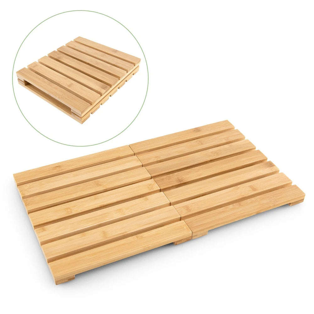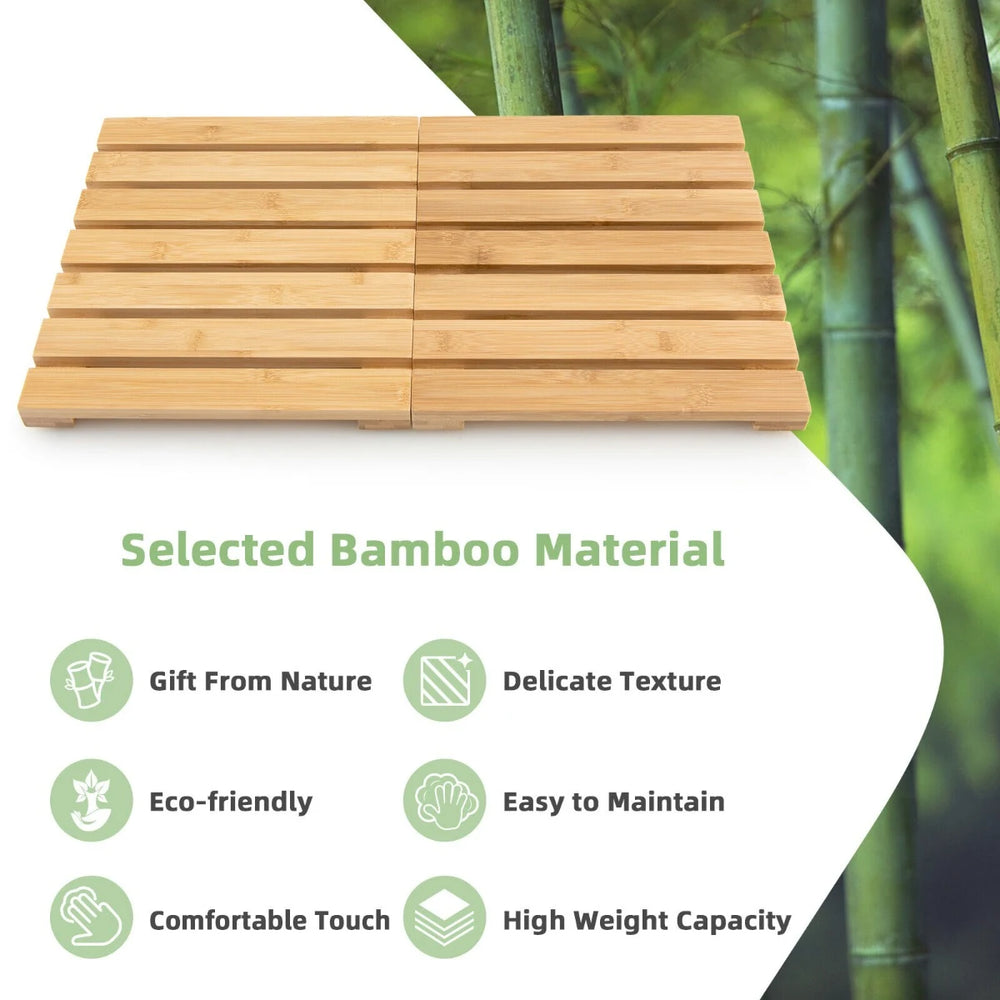 Folding Bamboo Bath Mat with Non-Slip Feet for Shower Sauna and Spa-Natural