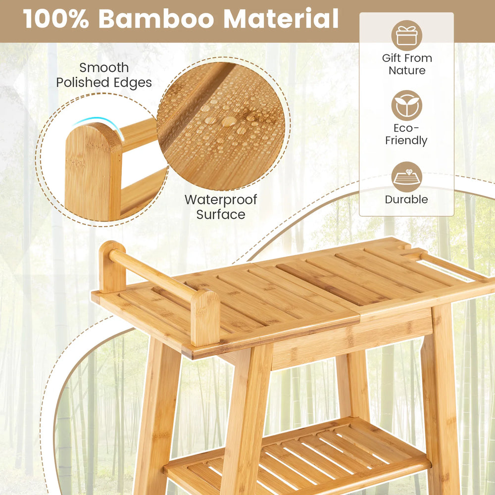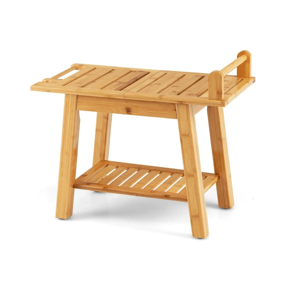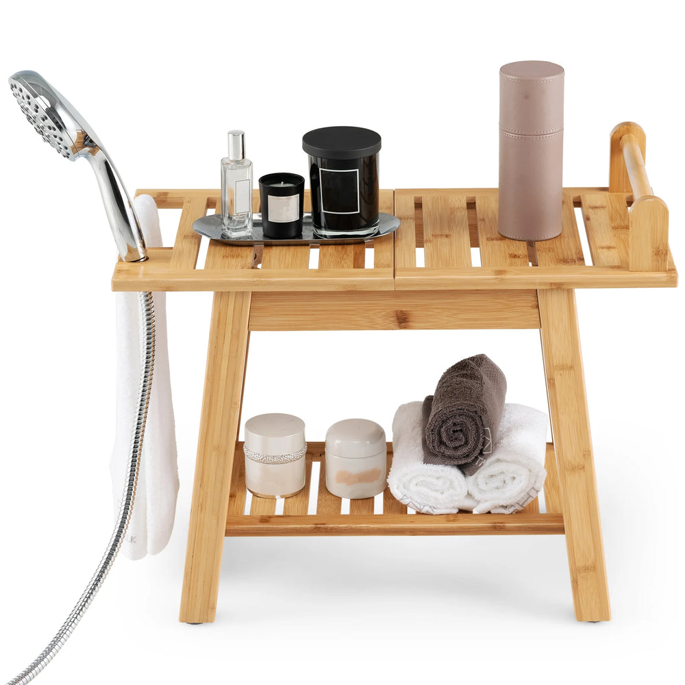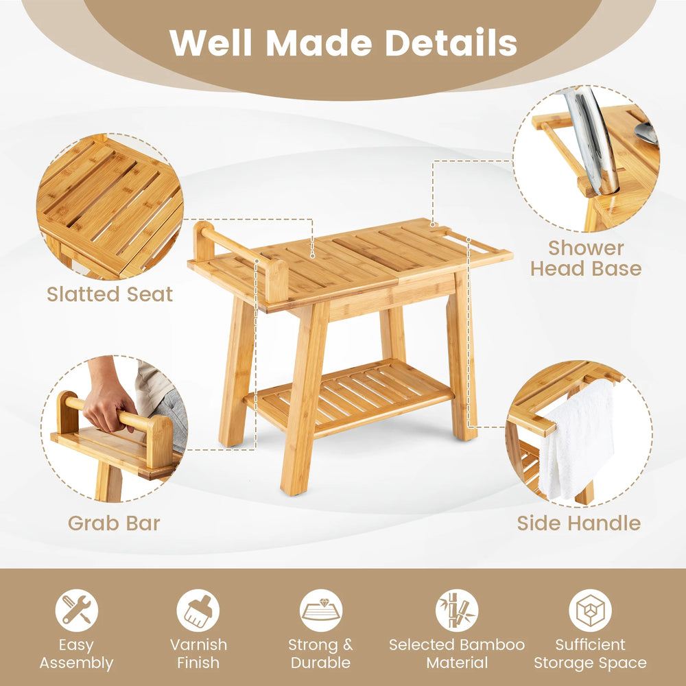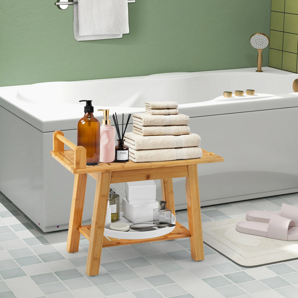 Bamboo Shower Bench with Storage Shelf