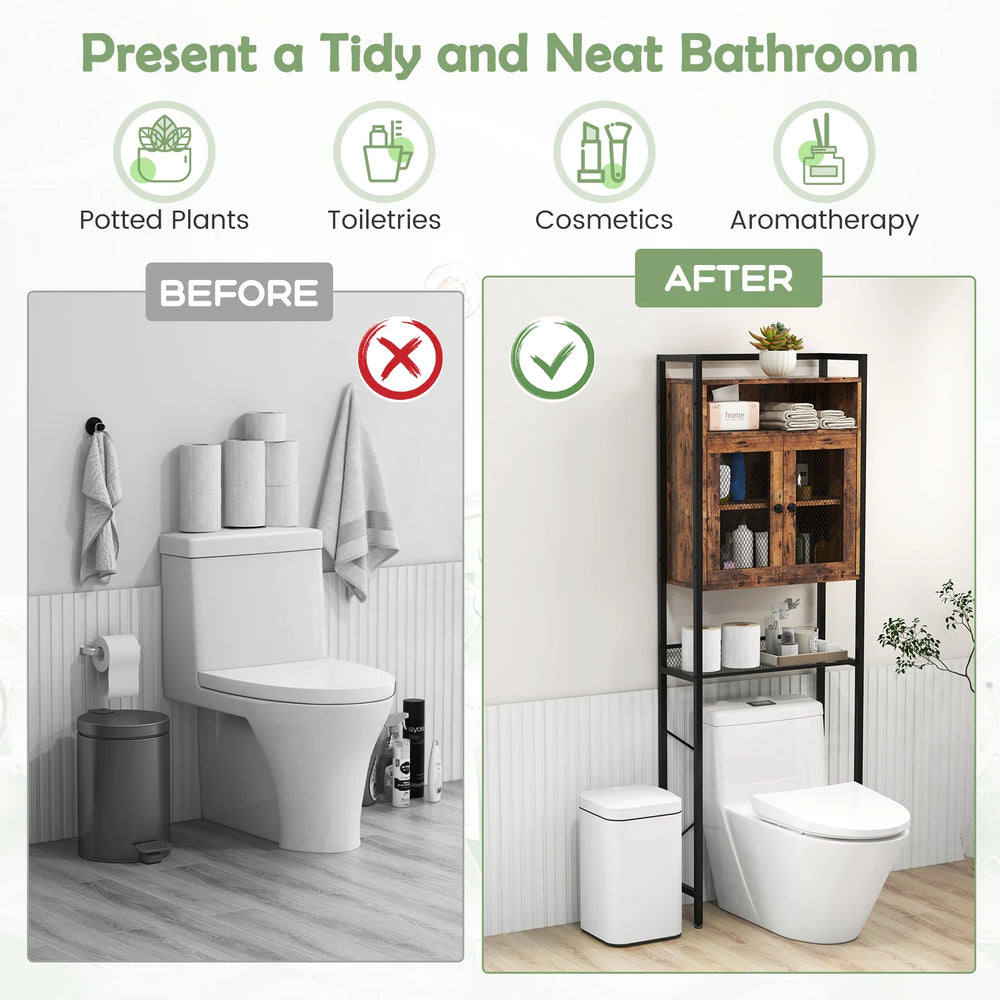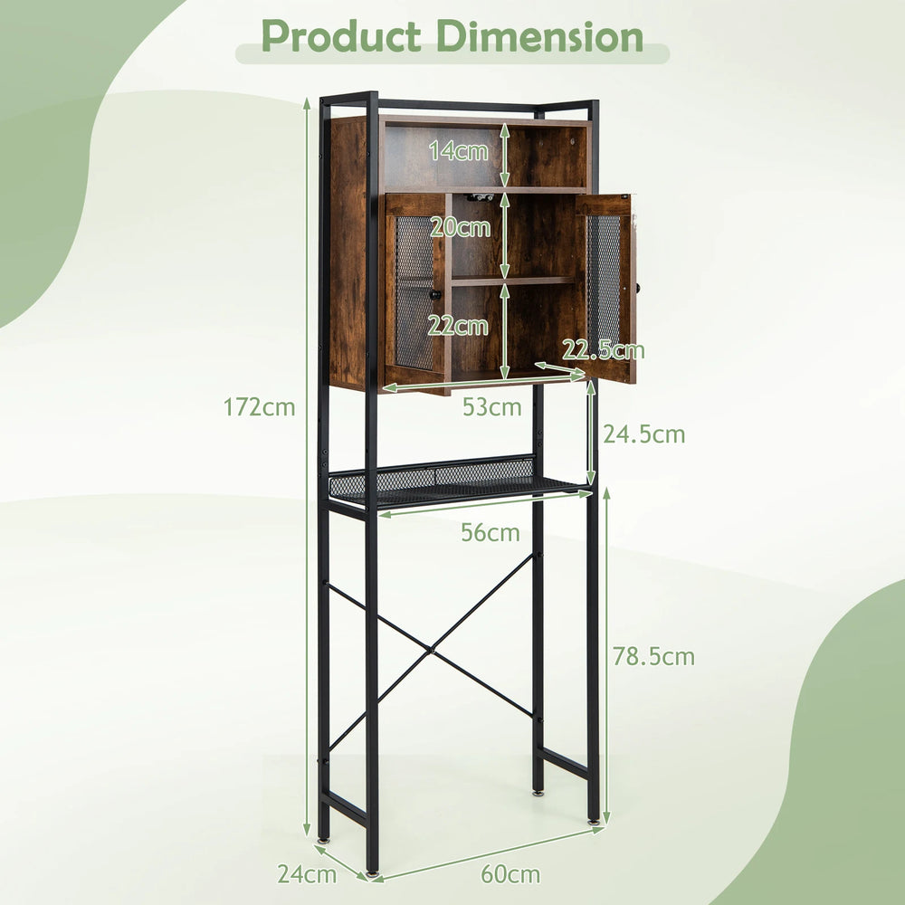 Over-The-Toilet Storage Cabinet with Heavy-Duty Metal Frame 2-door Freestanding-Rustic Brown