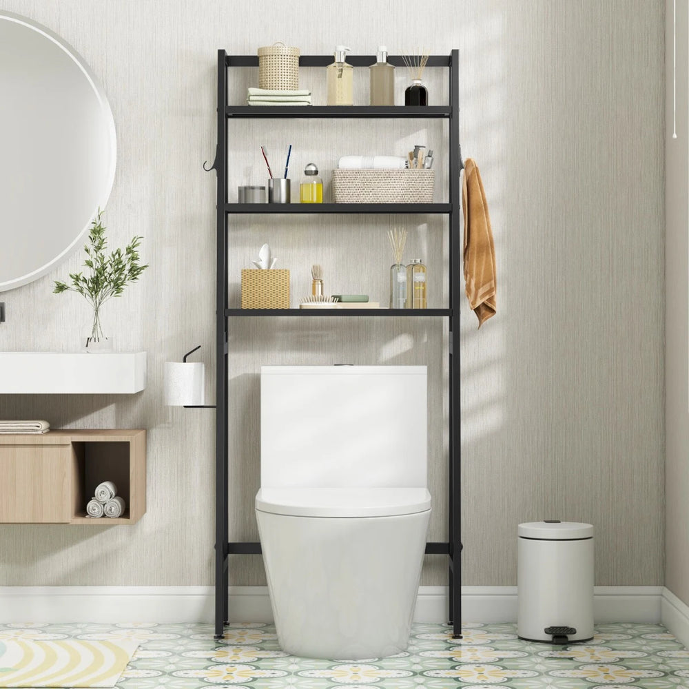 3-Tier Over The Toilet Storage Shelf with Adjustable Bottom Bar-Black