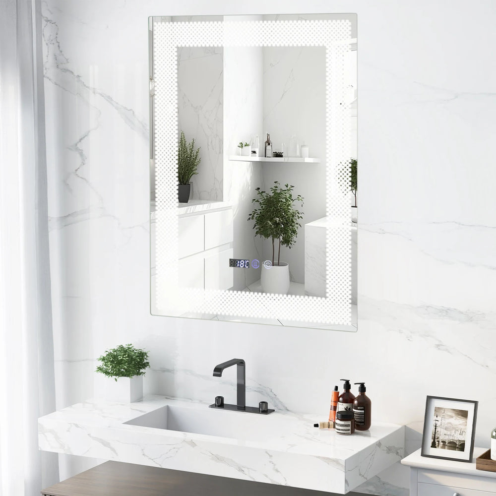 With just a single touch, this mirror effortlessly clears up a large defogging area, ensuring a clear reflection in a short amount of time. In addition to its defogging capabilities, this mirror offers three LED light choices, allowing you to personalize the lighting to suit your needs. With a simple press, you can easily switch between three color temperatures: warm light, natural light, and white light. Never worry about forgetting your preferred lighting settings again! This mirror features a smart memory function that retains your chosen lighting mode. This means that each time you use the mirror, it will automatically adjust to your desired settings, saving you time and effort. Furthermore, experience hassle-free installation with the easy-to-install bathroom mirror. This mirror comes with expansion screws that simplify the installation process. Rest assured knowing that the HD mirror is built with premium quality materials and designed to provide a safe and high-definition reflection. Every detail will be crystal clear, enabling you to see yourself with absolute clarity. Plus, for added safety, the mirror is equipped with an explosion-proof film, providing an extra layer of security during use. Upgrade your bathroom today and elevate your daily routine with this exceptional mirror. If you are looking for an anti-fog lighted mirror like this, do not hesitate to place an order! Efficient Defogging Function: This anti-fog mirror features a one-touch defogging function that clears up a large defogging area, providing you with a clear reflection in a short time. Meanwhile, you can long press to set the time for this mirror to automatically shut down which is energy-saving. 3 LED Light Choices: Equipped with adjustable LED lights, you can easily change the lighting to suit your needs. In addition, you can short-press to adjust the color from three color temperatures: 3000K warm light, 4500K natural light, and 6500K white light, or long-press to adjust the brightness seamlessly from 20% to 100%. Smart Memory Function: Featuring a smart memory function that remembers your preferred lighting settings, this lighted bathroom mirror will retain your preferred lighting settings, making it easy to set your preferred modes. Easy to Install: Experience the hassle-free installation process. This bathroom mirror comes with expansion screws for easy installation. Simply attach it to any flat wall surface in your bathroom, and this mirror is ready for use. Premium and Safe Mirror: The premium wall mirror provides a high-definition reflection, allowing you to see every detail with clarity. Furthermore, the mirror is equipped with an explosion-proof film for extra safety, providing high security during using it.
