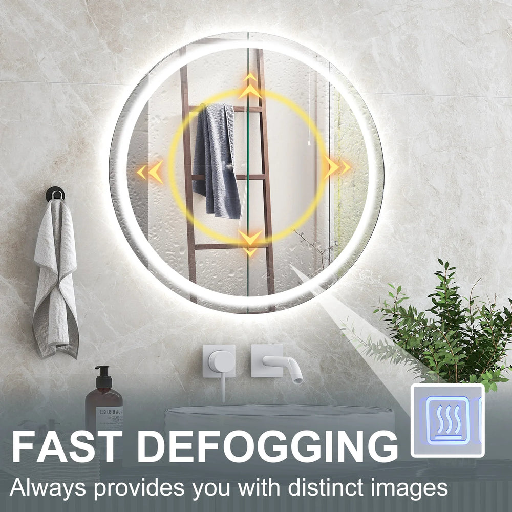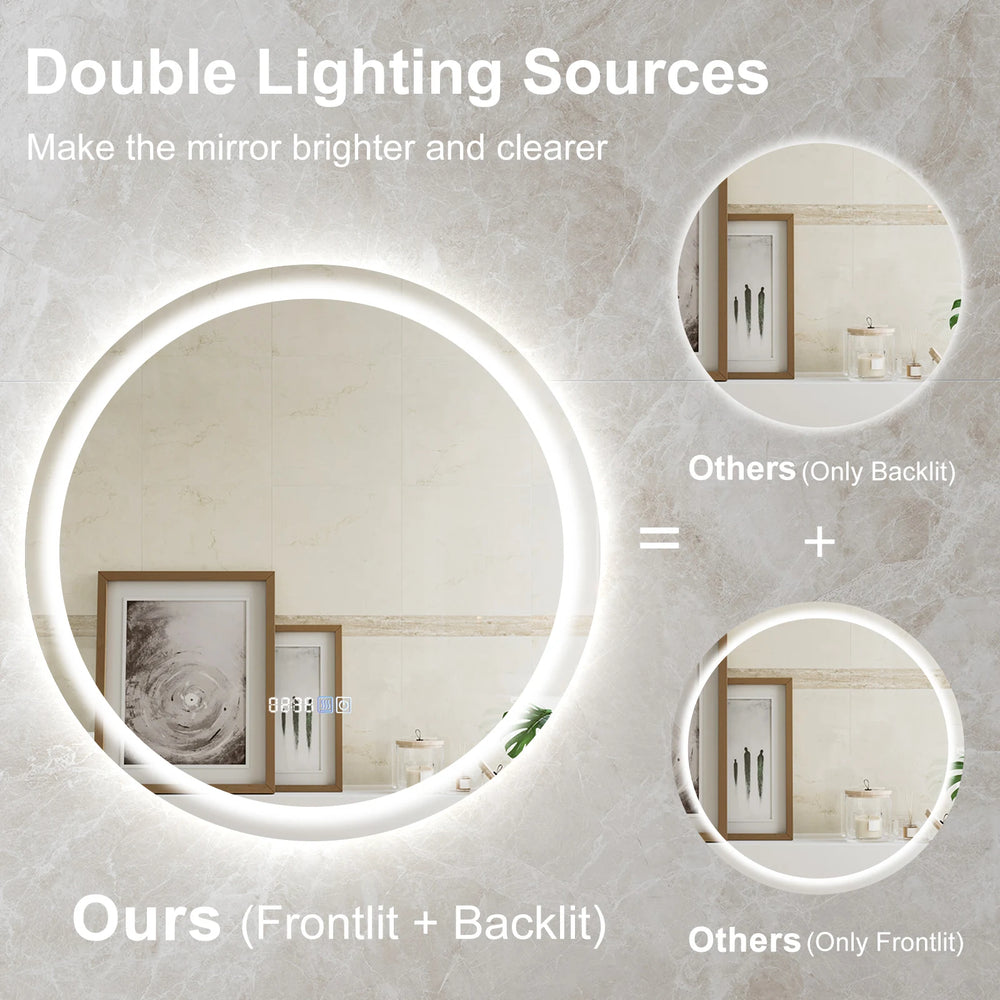 LED Bathroom Mirror with 3-Color Dimmable Lights, Time and Temp Display