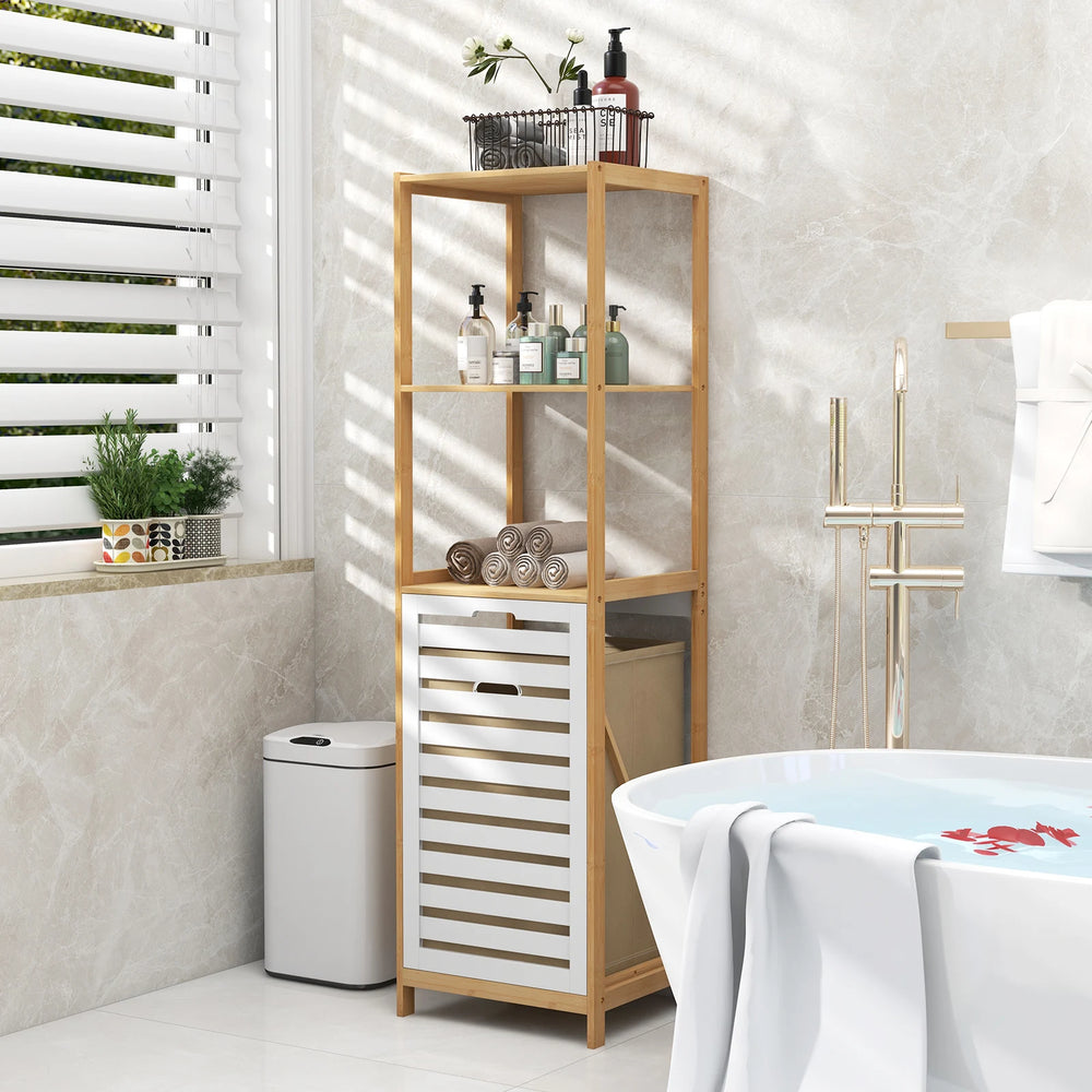 4-Tier Tilt-Out Laundry Hamper with Storage Shelves for Laundry Room-Natural and White