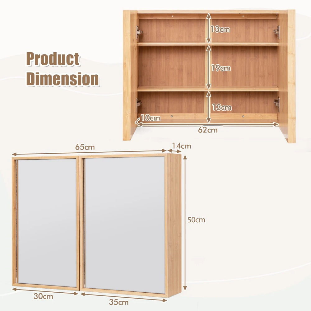 Double Door Bathroom Wall Cabinet with Mirror and Adjustable Shelves-Natural