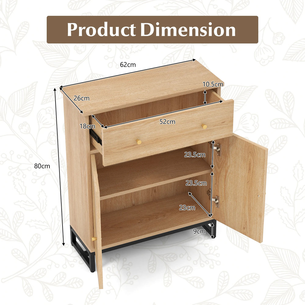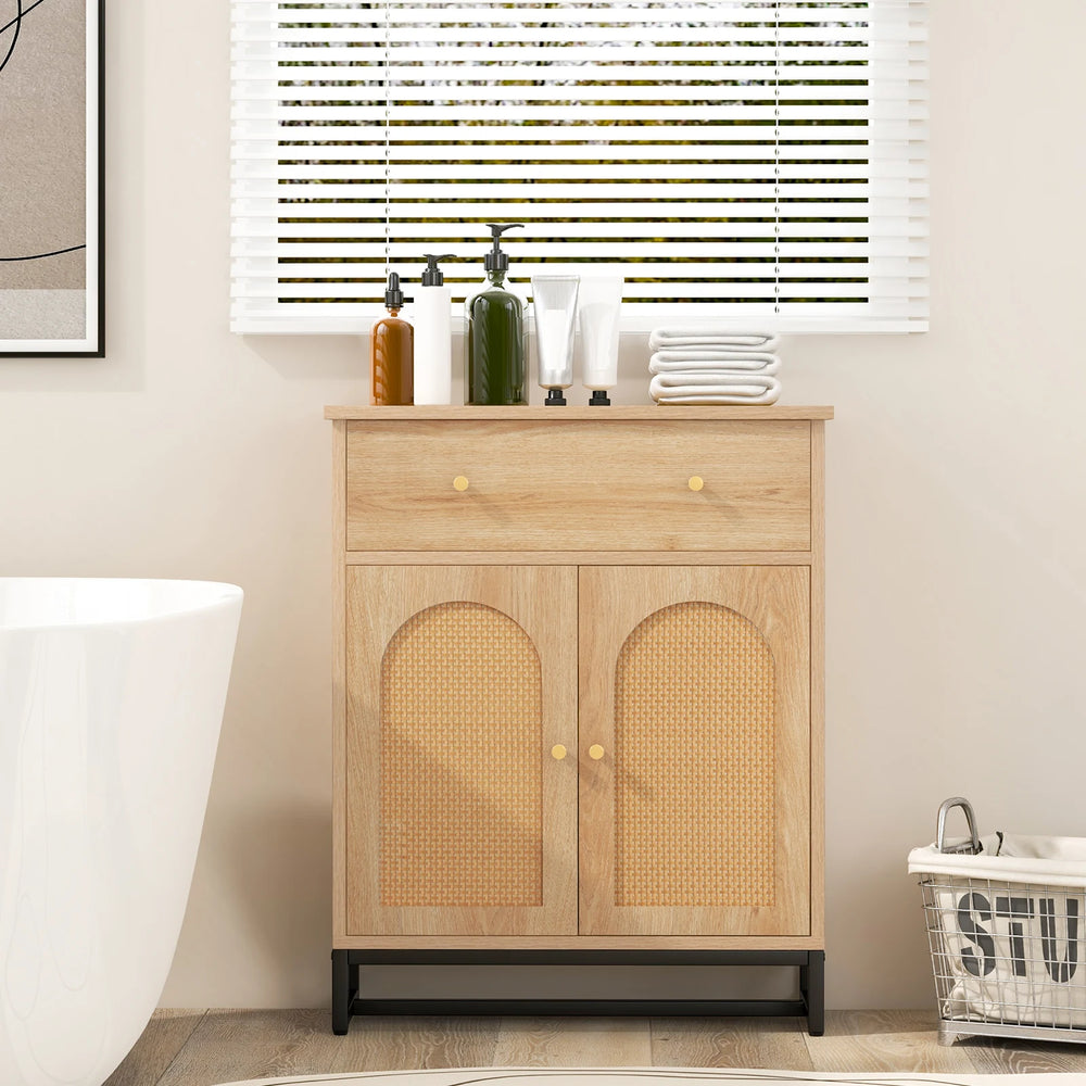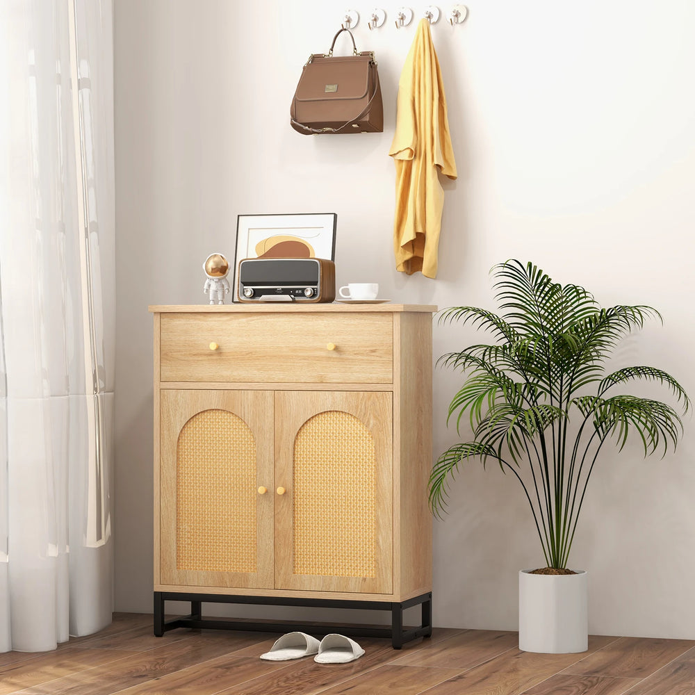 Accent Floor Storage Cabinet with Rattan Doors and Drawer-Natural